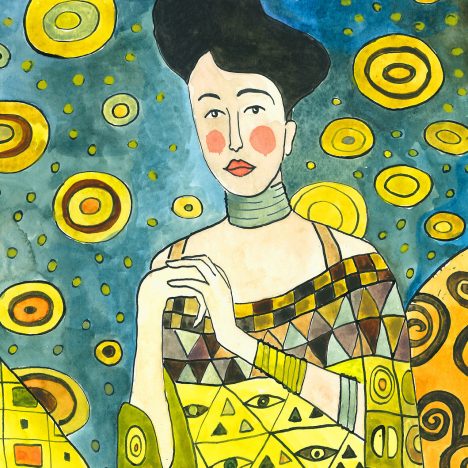 מארז של פוסטר מאוייר מלווה בדף צביעה רחב יריעה ומלא בפרטים וצורות לצביעה. האיור בהשראת הציור ״האישה בזהב״ מאת האמן גוסטב קלימט. איירה את הפוסטר ודף הצביעה המאיירת גל נפתלוביץ׳. אפשר להמציא…