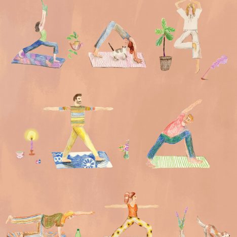 פוסטר מאוייר ״עושות יוגה״ בגודל 29.7 ס״מ על 42 ס״מ איורים: גאי ספרן-לולאי.